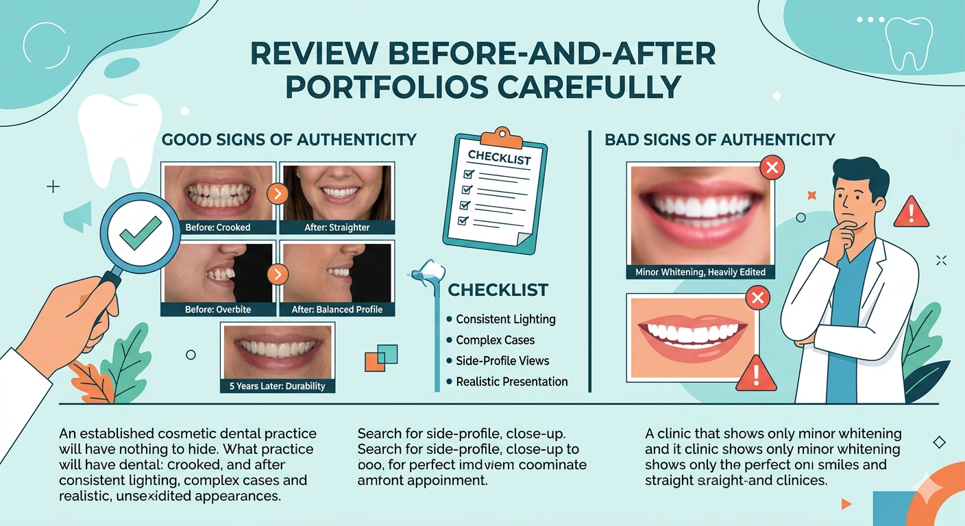 An established cosmetic dental practice will have nothing to hide and can showcase previous cases with pride. Examining before-and-after pictures gives you a sense of the dentist’s eye for beauty, as well as the artist’s expertise in complex cases. Search for side-profile, close-up, and long-term results photos to see how restorations hold up over time, not just perfectly lit, straight-on photographs.